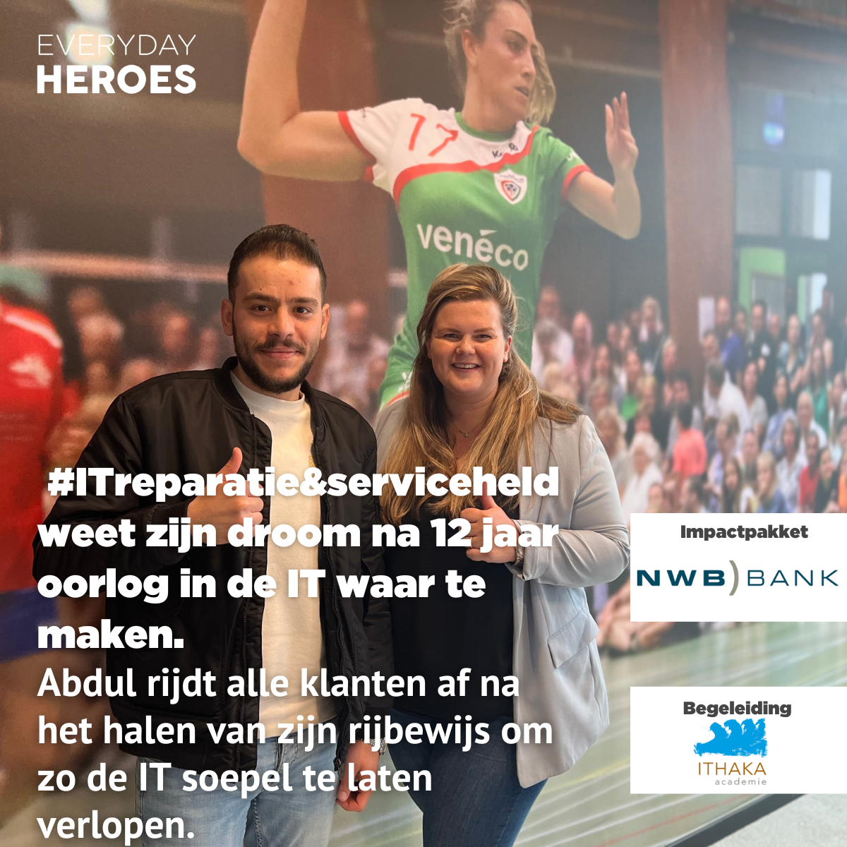 Nadat ik mijn procedures had afgerond en de verblijfsvergunning had gekregen, heb ik het COA direct laten weten dat ik in de IT wil gaan werken. De Ithaka Academy heeft hierin een grote rol gespeeld om mij te helpen die droom waar te maken. Uiteindelijk heb ik contact gezocht met het bedrijf Venéco en heb daar een voltijds contract gekregen. Voorwaarde was wel da tik zo snel mogelijk mijn rijbewijs zou halen om ook klanten te kunnen bezoeken. Dat hoort bij mijn functie als IT-service- en reparatie-ingenieur. Door Everyday Heroes heb ik kans gekregen om te doen waar ik als kind altijd van heb gedroomd.”