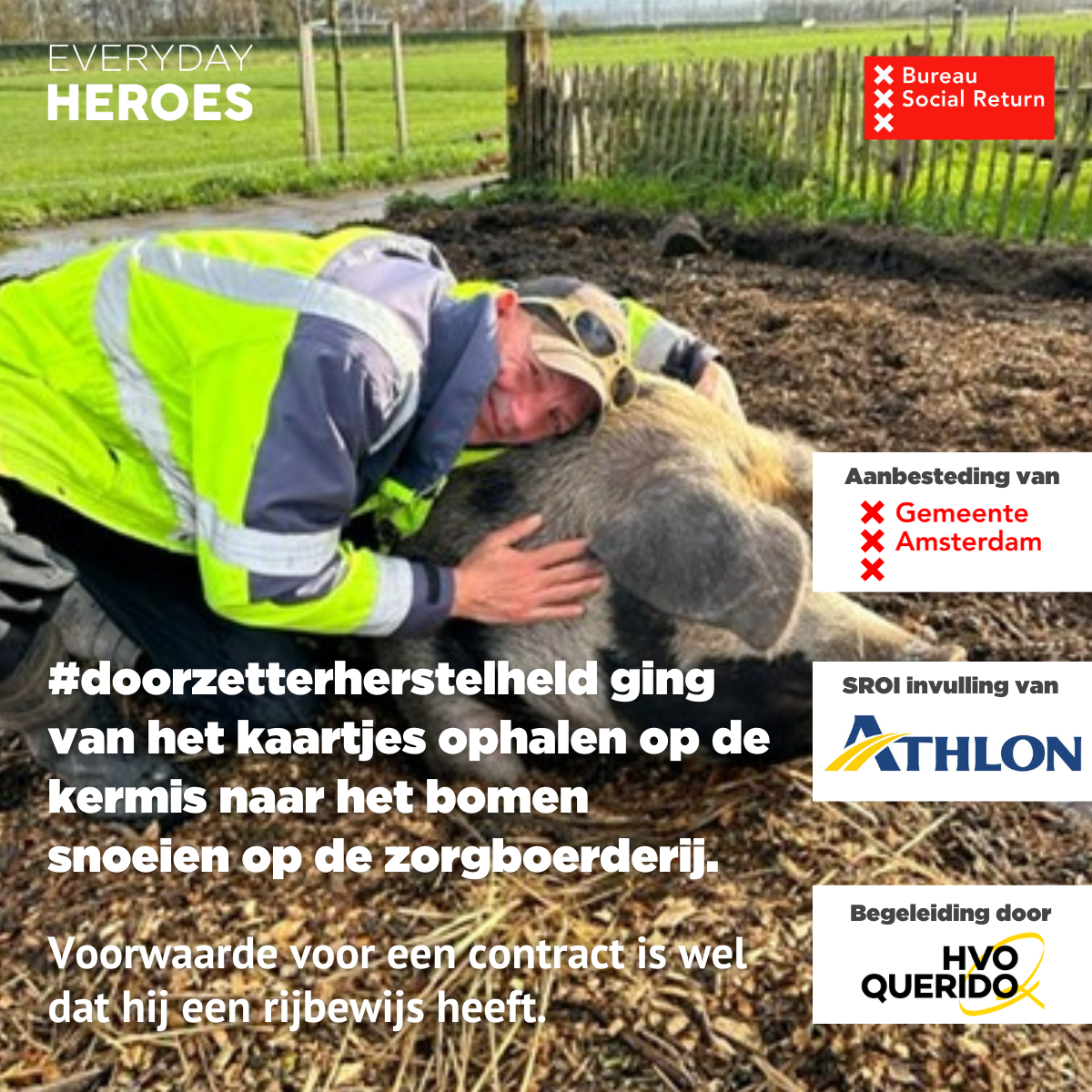 Ik doe momenteel een dagbesteding bij een zorgboerderij waar ik verschillende werkzaamheden doe zoals dieren verzorgen en onderhoud pleeg in opentuin en de Gaasperzoom zoals bomen zagen snoeien enz. Dit werk doe ik inmiddels 8 jaar en het bevalt mij zo goed, dat ik gevraagd heb of ik daar een vaste baan kan krijgen en dat is mogelijk, maar moet dan wel van de werkgever mijn rijbewijs halen. Ik vind het erg leuk om met dieren te werken en verzorgen en in de natuur te werken. Mijn doelen en dromen zijn huisje boompje beestje te hebben en een vaste baan en een goeie vader voor mijn zoontje kan zijn. Gelukkig wordt er aan gewerkt om weer contact met mijn zoontje te krijgen.