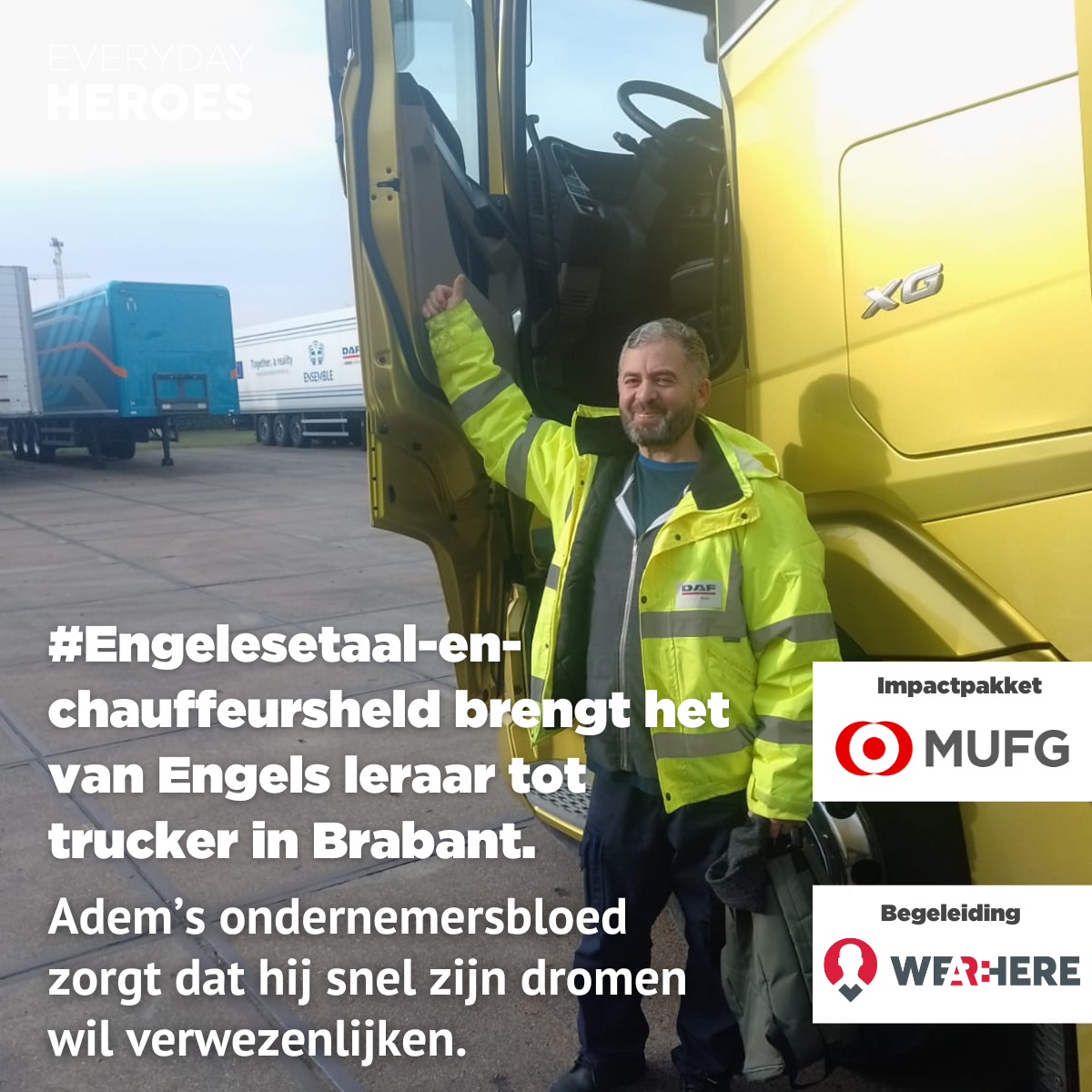 Ik was van plan om vrachtwagenchauffeur te worden en in de toekomst wil ik hiermee een transportbedrijf starten. Ik heb, zoals men zegt, ondernemersbloed in me en wil dit zo snel mogelijk bereiken. Helaas kon ik geen budget krijgen voor deze cursus, het is vrij duur. Maar door het toegewezen budget en begeleiding is het me gelukt om nu deze baan te krijgen. Het is een begin van mijn lange carrière waar ik uiteindelijk zelf een bedrijf ga starten! Ik dank hierbij Everyday Heroes, en hun sponsors voor de mogelijkheid!”