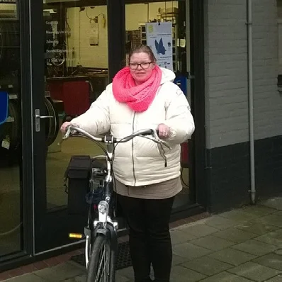 Vanuit het Power Certificaat heeft Angelique een prachtige fiets aan kunnen schaffen. Nu kan ze zelf naar de Kringloopwinkel komen en is haar werkgever daar ook zeker van.