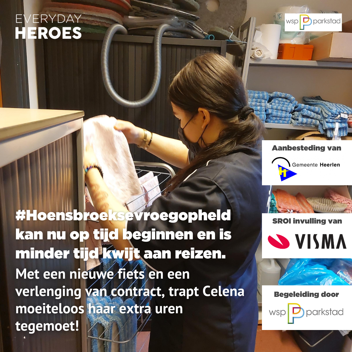 Haar oude fiets is al een tijd defect en Celena mag daarom tijdelijk een uur later beginnen. Een goede fiets maakt dat ze veel minder tijd kwijt is aan haar woon-werkverkeer, waardoor ze uiteindelijk ook makkelijker meer uren kan gaan draaien. De werkgever juicht dit dus toe. Inmiddels heeft Celena de toezegging dat haar contract wordt verlengd. Met een fiets zal zij het werk goed kunnen bereiken en meer uren kunnen draaien.