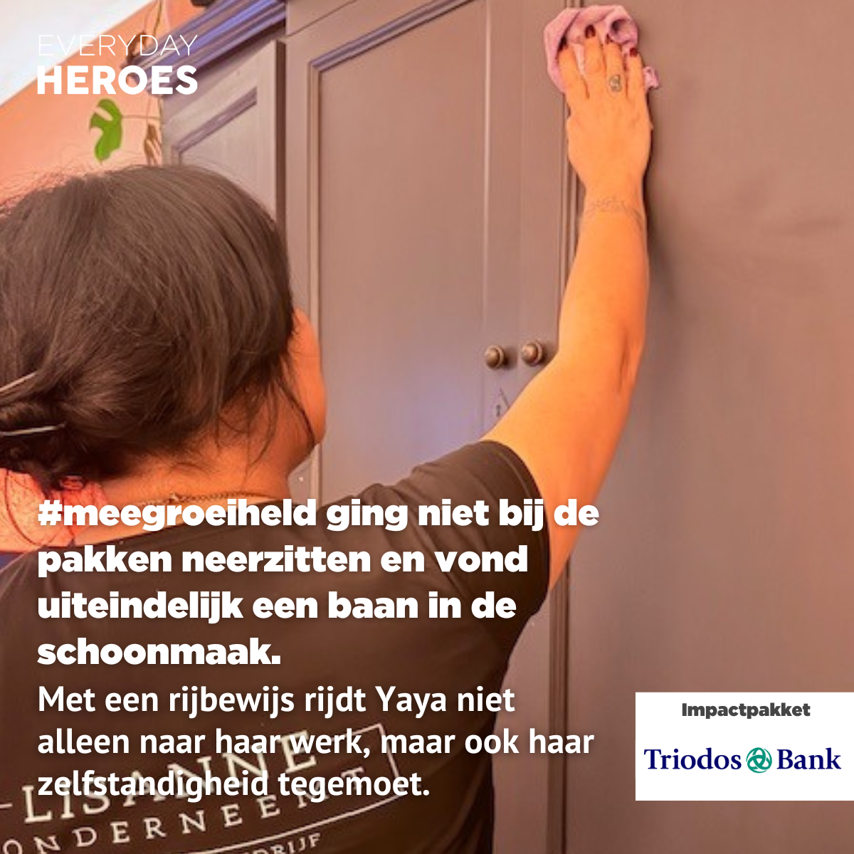 Het werk doet haar goed: weer iets bijdragen, mensen om zich heen hebben, het gevoel dat ze ertoe doet. Nu wil ze graag haar rijbewijs halen, zodat ze ook op plekken kan werken die niet goed bereikbaar zijn met het openbaar vervoer of de fiets. Zo kan ze nog zelfstandiger worden en meer verantwoordelijkheden op zich nemen.