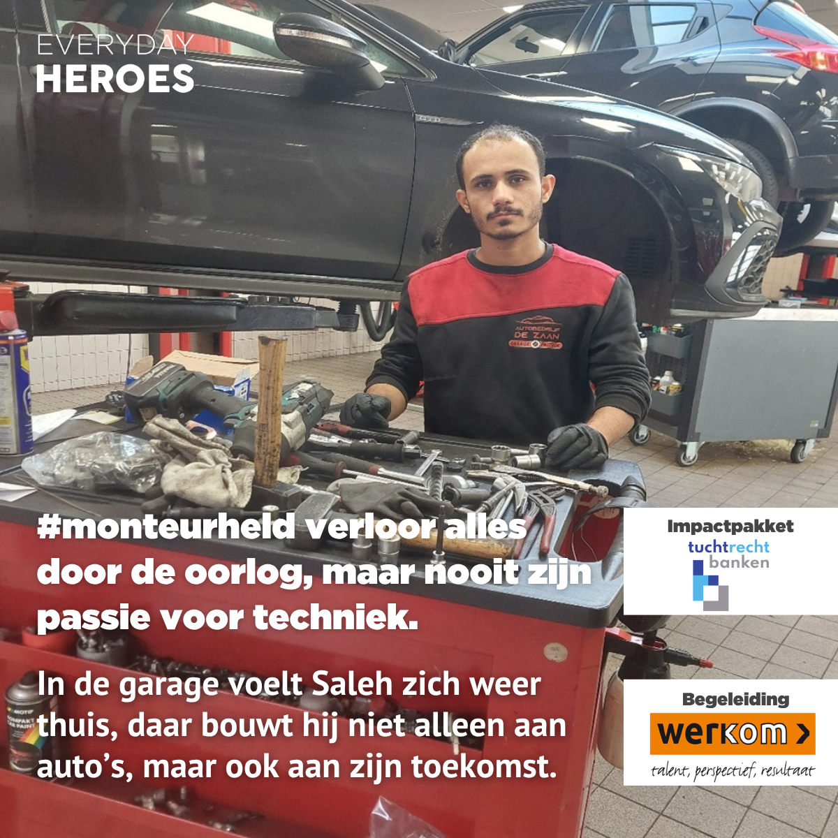 Met een leerwerktraject bij een garage kan hij zijn vakkennis behouden, zijn Nederlands verbeteren en stap voor stap zijn doel bereiken. Hij ziet zichzelf over enkele jaren als een volwaardig automonteur, misschien zelfs met een eigen werkplaats. Voor Saleh is dit meer dan een baan, het is een nieuwe start en hij voelt zich op zijn gemak in de garage en ook zijn collega’s zijn blij met de aanwezigheid van Saleh.
