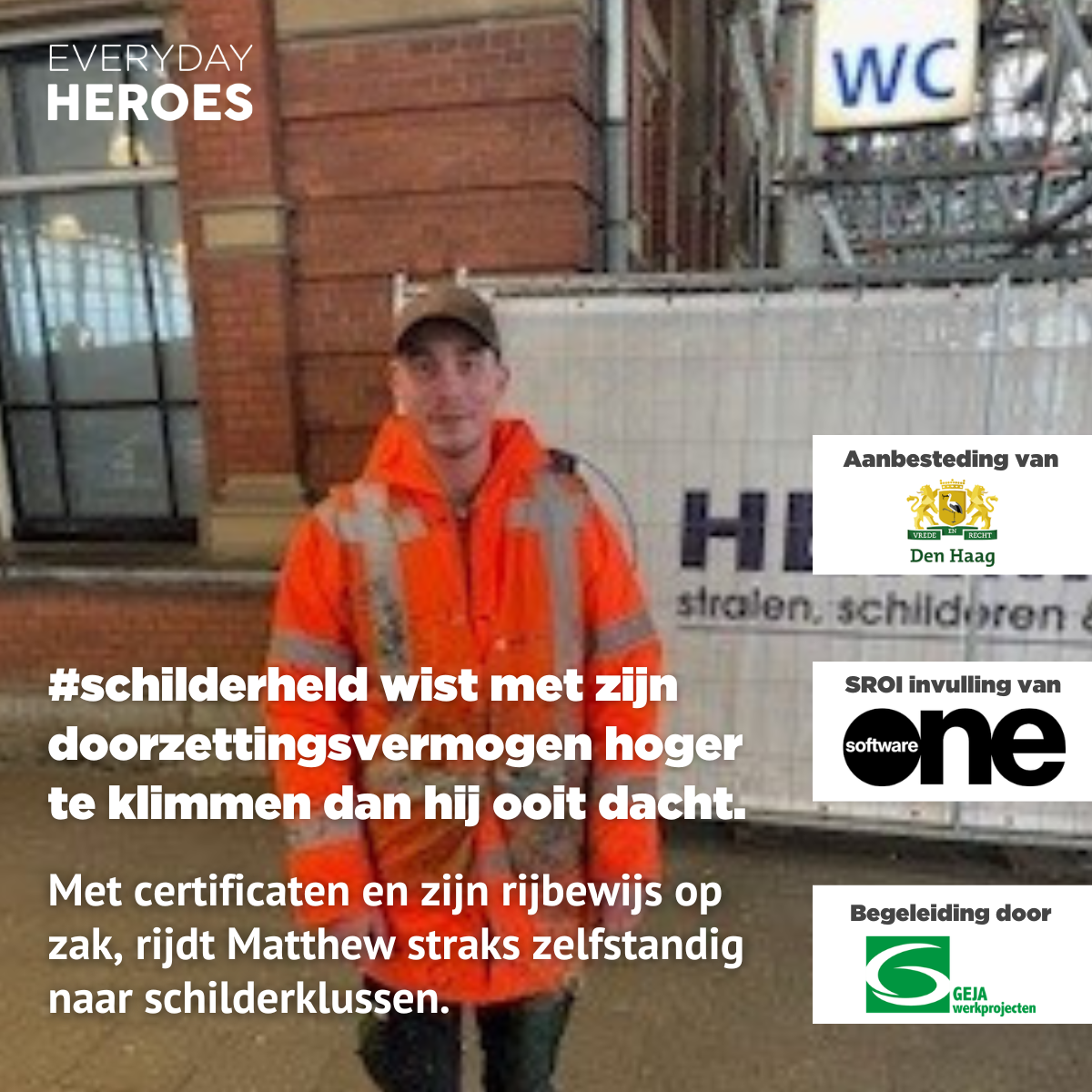 Inmiddels werkt hij als schilder bij een schilderwerkenbedrijf op het station Den Haag HS, waar hij alle hoogtes van het station ziet, want ze schilderen de metalen constructie en de houten platen van het dak. Hij vindt het werk leuk, begint ook al een beetje zijn plekje te vinden. Van hele rustige niet pratende jongen begint hij nu ook mee te praten of af en toe wat te zeggen tegen de uitvoerders. Wat een hele positieve boost heeft gegeven is dat hij in twee weken tijd twee certificaten heeft behaald. Het VCA en veilig werken langs het spoor. Dit was echt heel bijzonder voor hem en dit helpt heel erg positief voor zijn zelfvertrouwen. Hij wil heel graag verder in het schilderwerk en wil zich hier verder in ontwikkelen en steeds beter worden. Zijn werkgever ziet hem graag snel achter het stuur van een buisje om straks zelfstandig klussen te gaan uitvoeren.