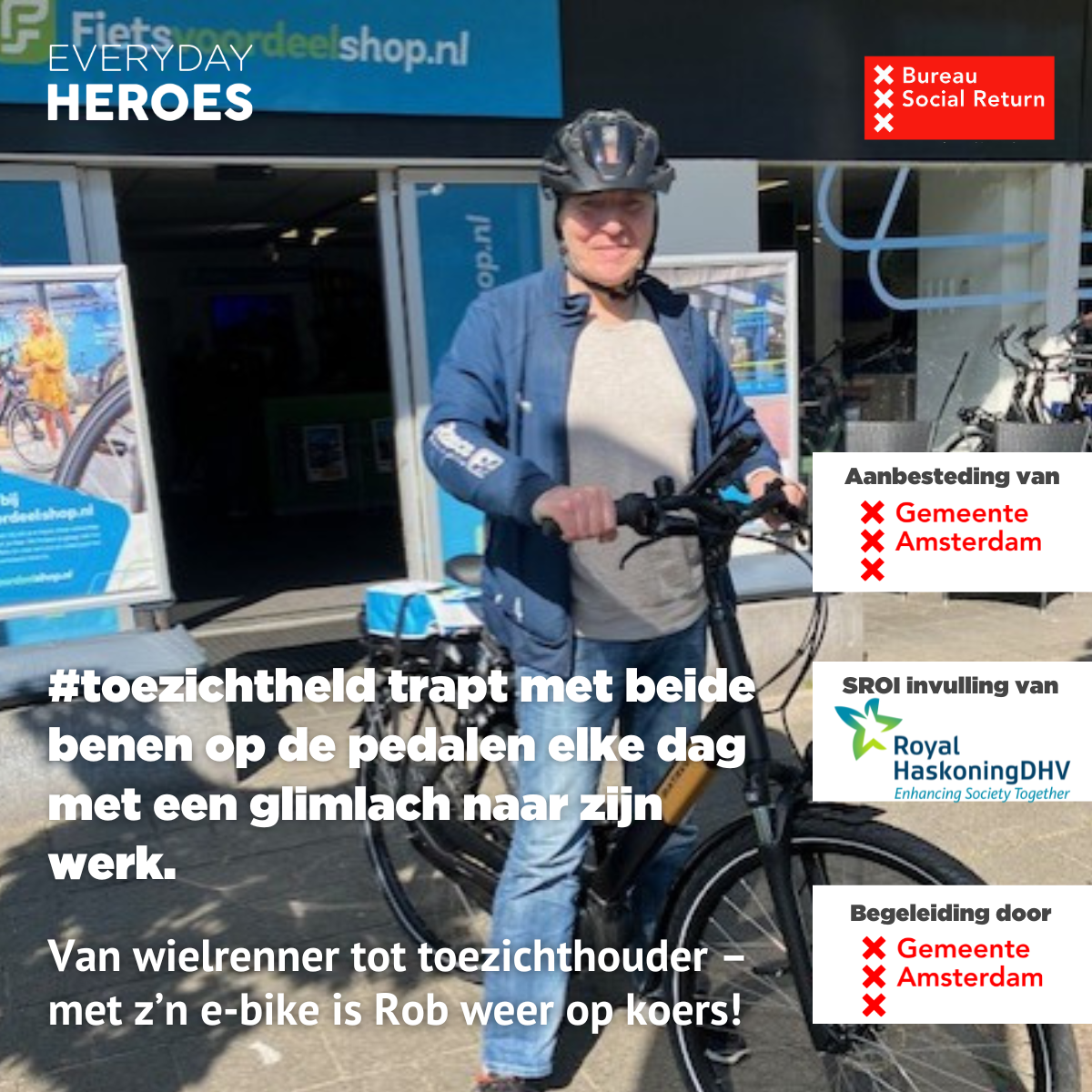 Na een lange en zware periode kan Rob eindelijk weer lachen. Hij heeft een baan gevonden als toezichthouder en pakt daarmee zijn oude, vertrouwde functie weer op. Wat het extra bijzonder maakt: hij kan ook zijn favoriete bezigheid – fietsen – opnieuw oppakken.