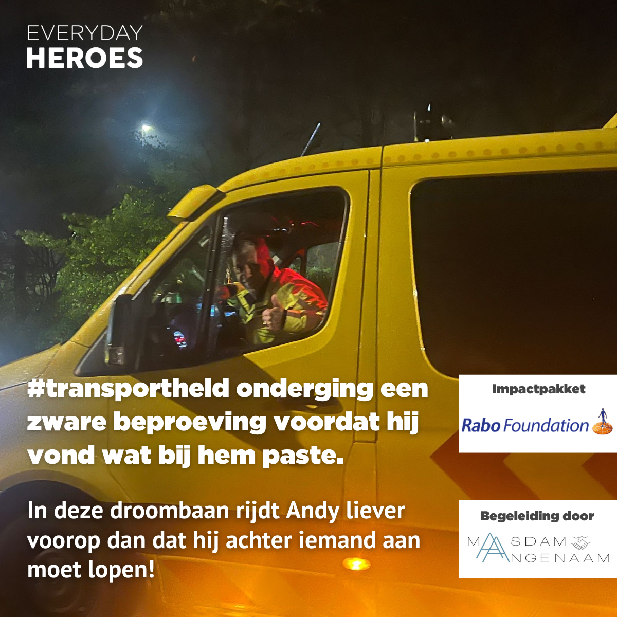 Om als transportbegeleider aan de slag te mogen, is een officieel certificaat verplicht. En hoewel de baan voor het oprapen lag, bleek de opleiding een flinke investering. Het UWV vergoedde de kosten niet, ondanks de baangarantie. Dankzij de inzet van meerdere partijen — onder wie Everyday Heroes en KonnecteD— is het uiteindelijk tóch gelukt om de opleiding te financieren.