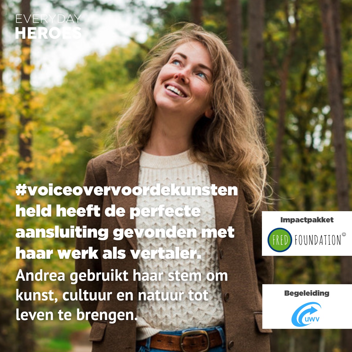 Mijn doel is om met mijn stem bij te dragen aan een rijkere beleving van de mooie dingen in het leven, zoals kunst, cultuur en natuur, en zo de wereld een beetje mooier te maken. Met de hulp van Everyday Heroes hoop ik deze droom te verwezenlijken. Ik heb superveel zin om binnenkort te starten met de cursus.”