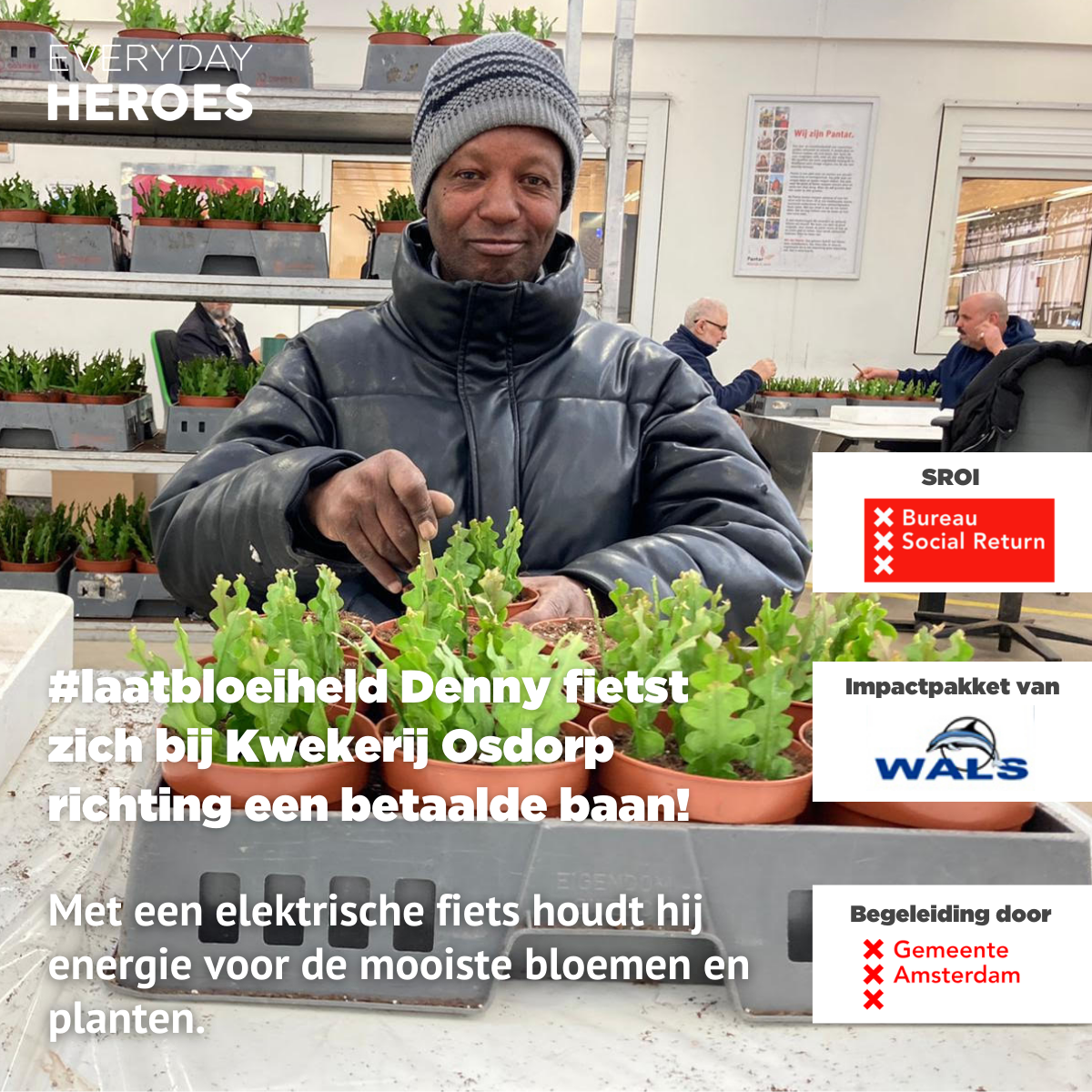 Denny heeft jarenlang dagbesteding gedaan in de kassen bij Kwekerij Osdorp. Op de leeftijd van 57 jaar wilde hij graag doorgroeien naar een betaalde baan. Samen met zijn IPS coach heeft hij een stageplek bij de Tuinderij van Pantar gevonden. De eerste tijd waren de nieuwe omgeving en werkzaamheden erg wennen voor Denny.